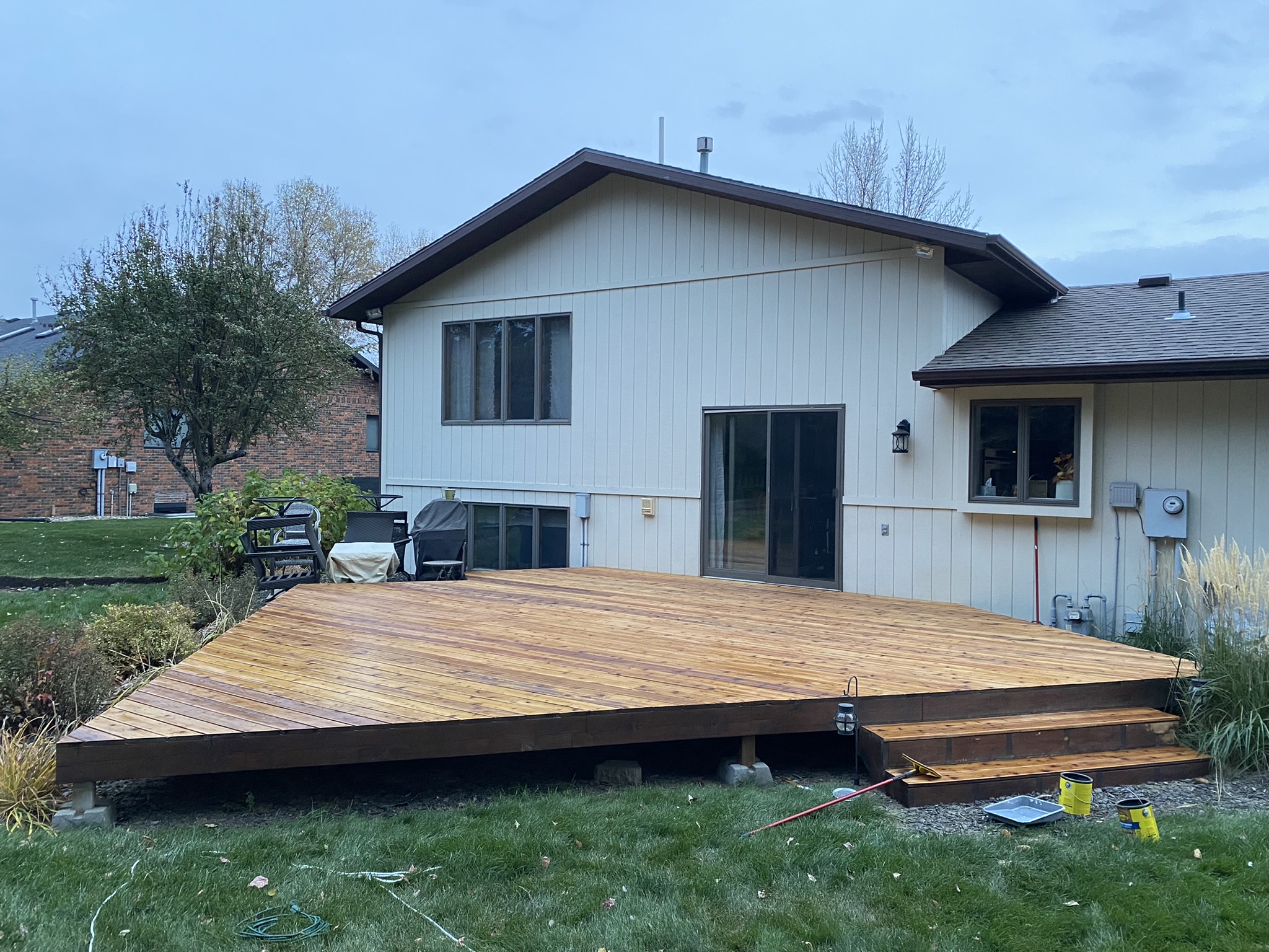 I loathe staining the deck with my every being. After the hail storm in June, we had to sand it all down first and then restain it. In hindsight, a much smaller deck would have been a better choice when we redid it several years ago. Who needs a deck this big anyway????? We are getting much too old to do such large projects.